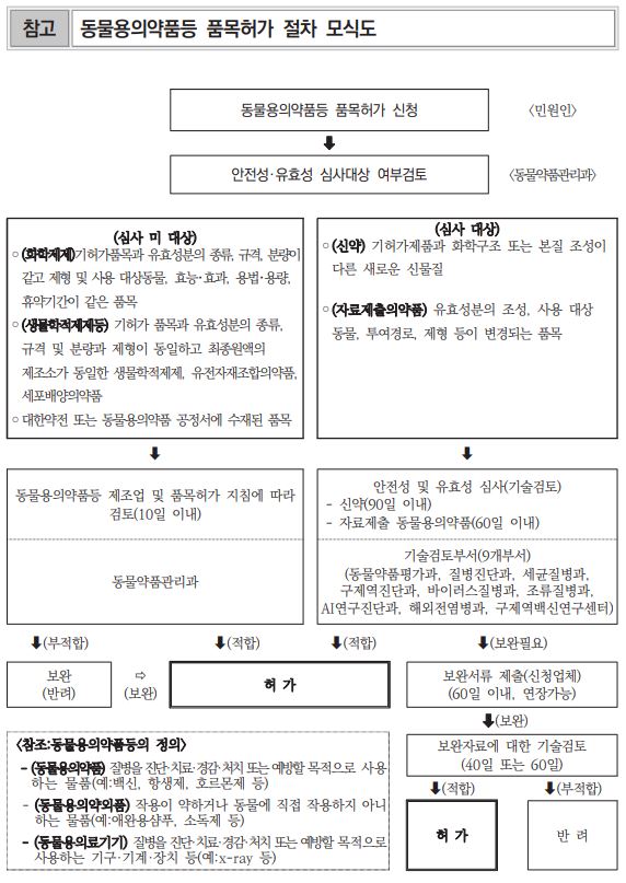 동물용 의약품에 대한 신약 허가는 아래와 같은 절차를 통해 진행된다.