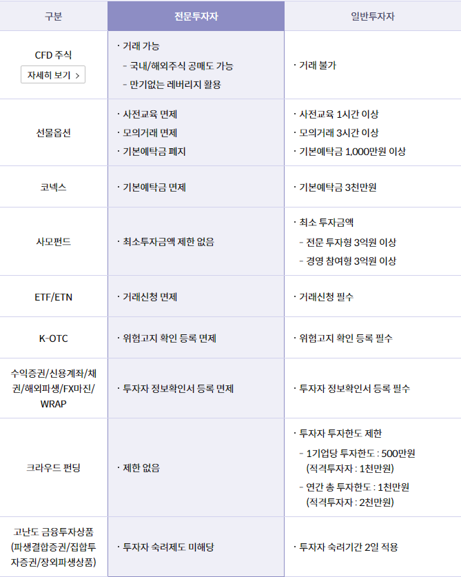 이번에 CFD 거래를 위해 알아보던 중 개인 전문투자자라는 것을 알게 되었다.
